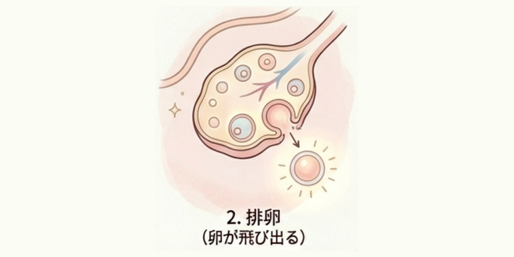 2. 卵子が育ち、卵巣から卵が飛び出ること(排卵)