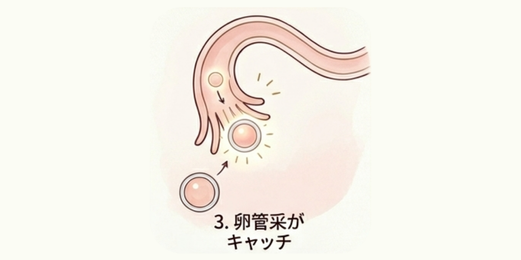 排卵された卵子を、卵管の先にある卵管采(らんかんさい)がキャッチします。