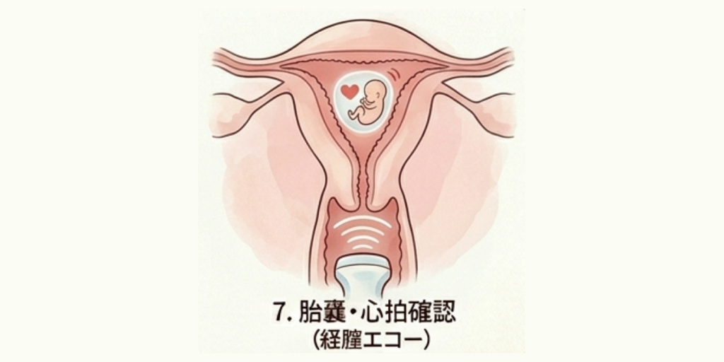 経膣エコー検査で、「胎嚢(たいのう)」つまり赤ちゃんの袋が見え、さらに成長すると「心拍」を確認することができます。